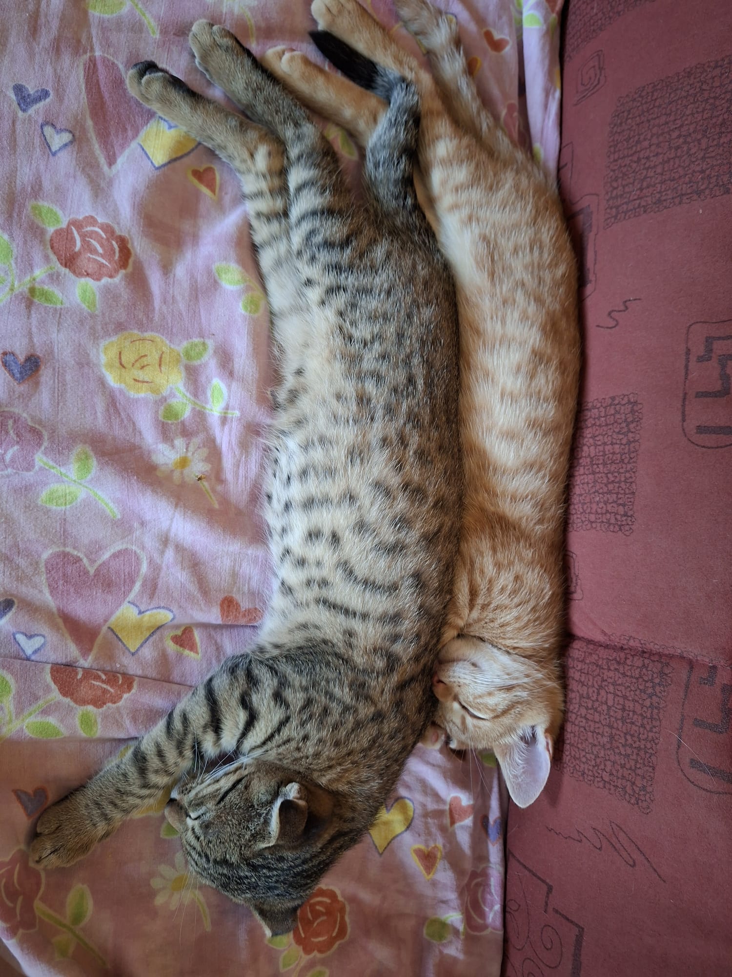 Obwohl wir jetzt nur noch zu zweit bei unserer Pflegestelle sind toben wir den ganzen Tag herum und bemühen uns dem Titel „Wilde Rasselbande“ auch zu zweit noch alle Ehre zu machen! Wenn einmal Pause vom Spielen ist und wir unseren wohlverdienten Schönheitsschlaf halten, träumen wir von unserem eigenen Garten in dem wir endlich die große weite Welt erkunden und vielleicht den ein oder anderen Schmetterling beobachten können - angeblichen sollen die ziemlich schwer zu fangen sein…