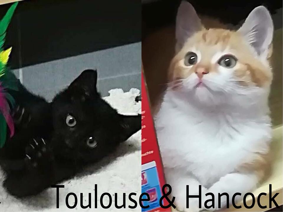 Toulouse ist immer noch etwas scheu und braucht etwas Zeit bis sie aus ihrem Versteck kommt. Aber mit viel Geduld und Futter lässt auch sie sich blicken. Sie kuschelt und spielt gerne mit ihrem Bruder Hancock.