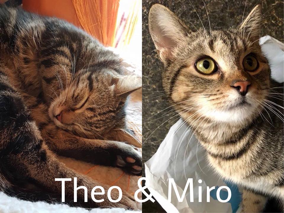 Theo ist ein sehr zutraulicher und verschmuster Katzenbub und Miro braucht etwas Zeit, lässt sich dann aber genauso verwöhnen und liebhaben.