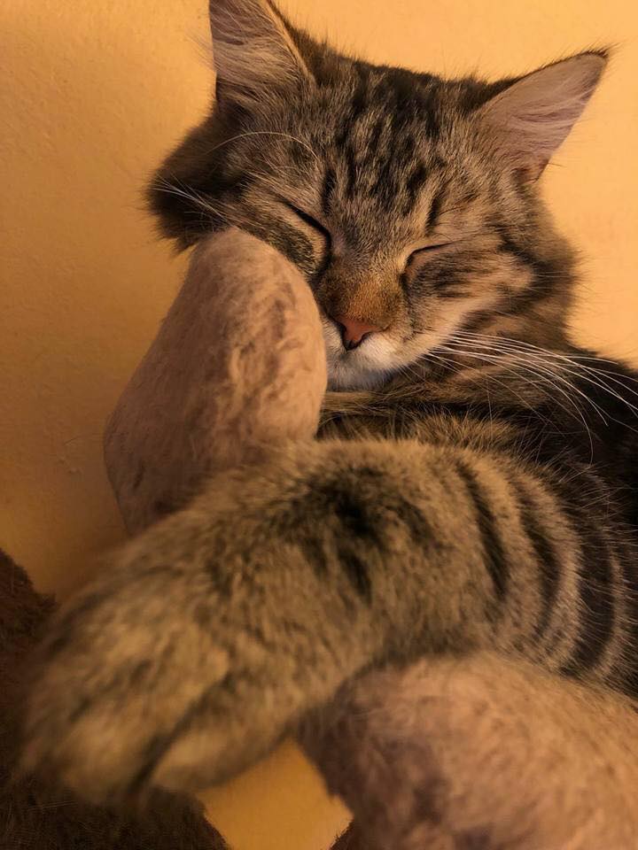 Ich bin der unerschrockene von uns beiden. Ich bin neugierig und erkunde alles was nur geht. Nora ist noch etwas zurückhaltender aber mit mir wird sie langsam mutiger. Sonst aber ist Nora eine kleine verspielte Katzendame. Nur das kuscheln mag sie noch nicht so.