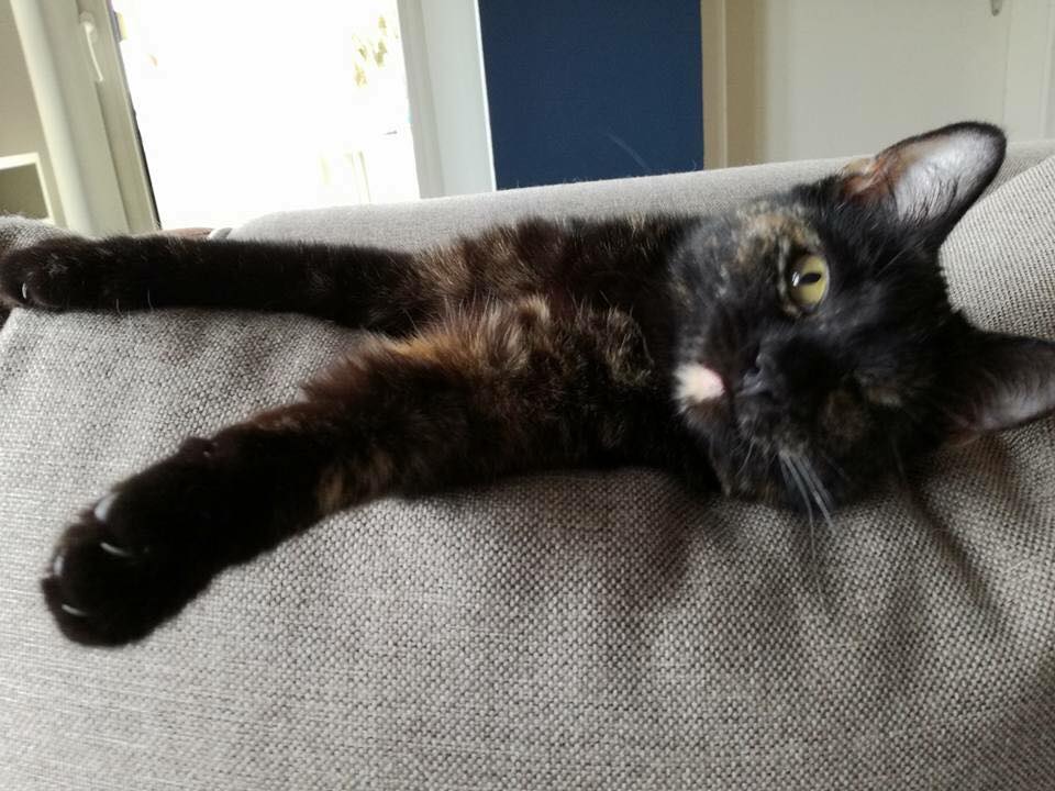 Cleo ist eine unheimlich verschmußte Katze. Sobald man 5 Minuten irgendwo sitzt wird sie versuchen sich auf den Schoß zu legen. Sie genießt die Zweisamkeit mit ihrem Menschen sehr und fordert diese auch mit Miauen ein. Sie ist sehr verspielt und flink. Bei zu schnellen Bewegungen und wenn man versucht sie von oben herab zu nehmen ist sie auf Grund ihres fehlenden Auges etwas schrecksam. Sie zeigt aber keinerlei Scheu vor Fremden und legt sich auch hier direkt auf deren Schoß. Sie ist ebenfalls umgänglich mit Hunden und Kindern. Wär eine Katze möchte die ständig auf dem Schoß liegt und mit der man jederzeit kuscheln kann, hat mit ihr seine Traumkatze gefunden.
