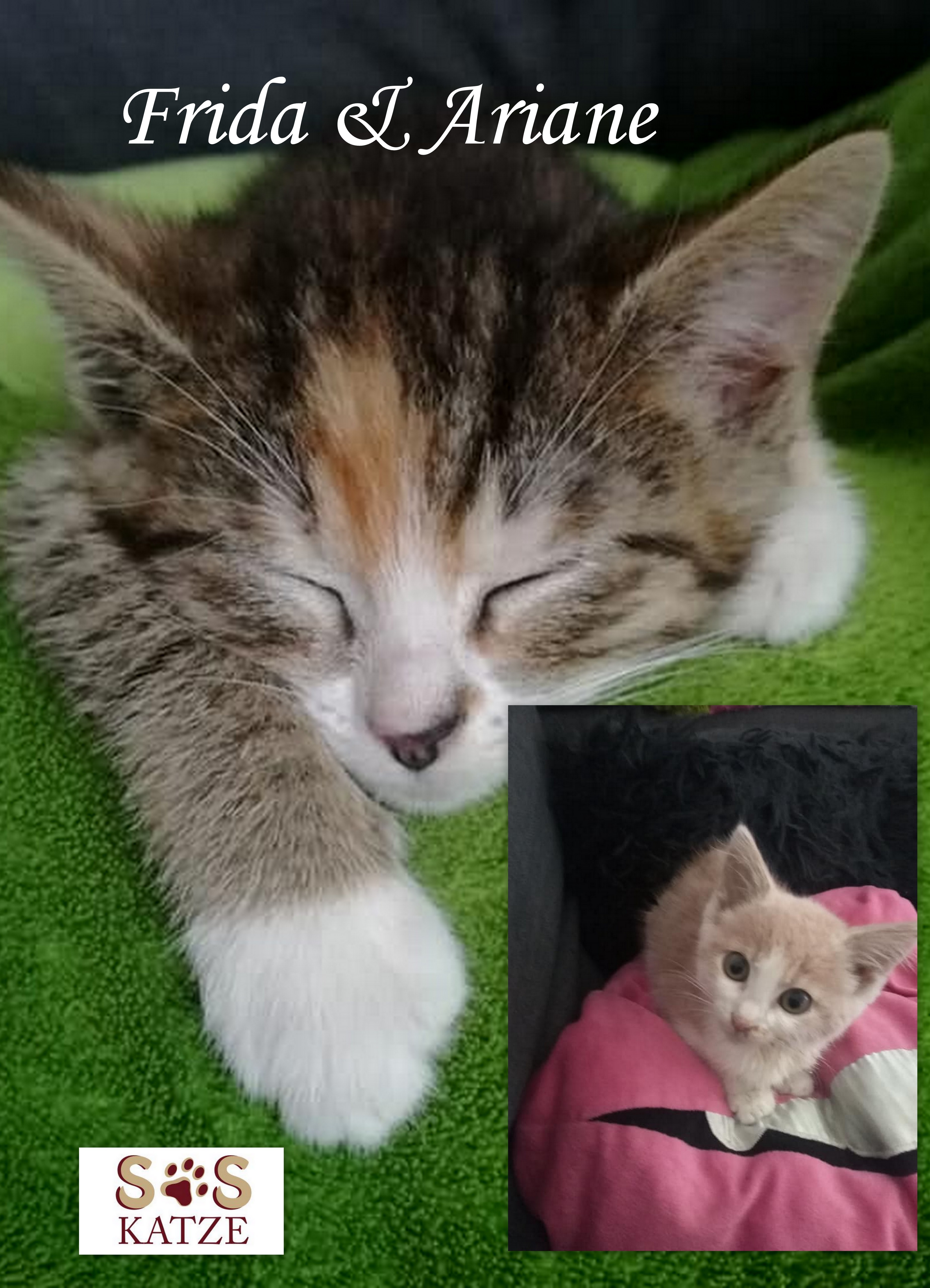 Ich bin Frida (Tigerl) und das auf dem anderen Foto ist Ariane. Wir sind zwei aufgeweckte, neugierige, junge Katzendamen und immer auf der Suche nach neuen Abenteuern. Unsere nächste Entdeckungsreise wird die Suche nach einem "Für-Immer-Zuhause". Wir wünschen uns Dosenöffner die gerne und viel mit uns spielen und kuscheln, wir lieben beides gleichermaßen. In unserem neuen Zuhause sollte es zumindest einen gesicherten Balkon geben, den kennen und lieben wir.
