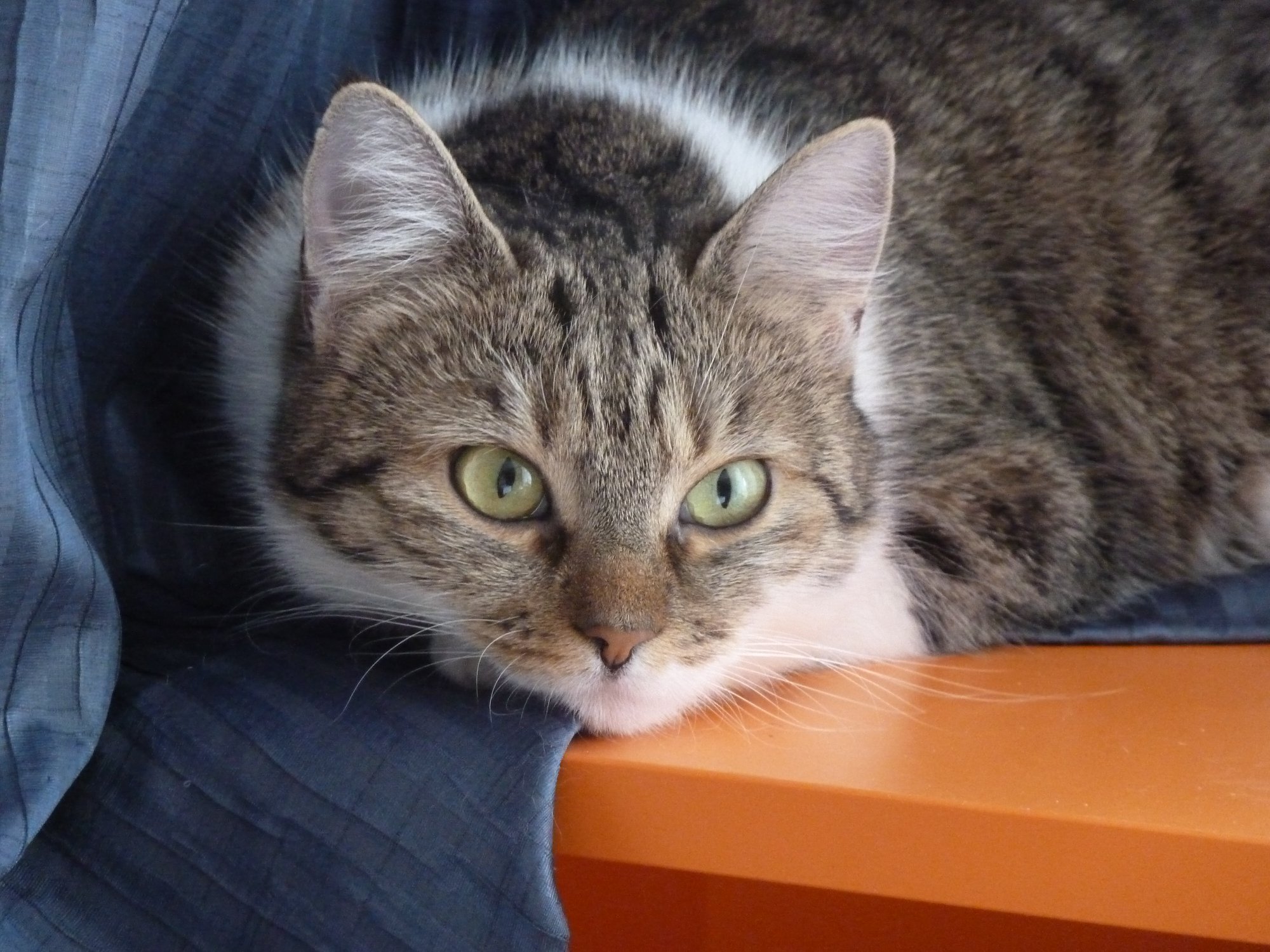 Ich bin eine eher kleinwüchsige Katzendame, die sich immer mehr an die Menschen
