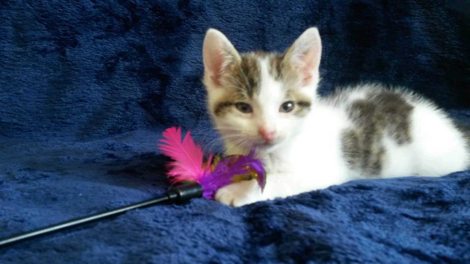 Die Pflegemama sagt, Finn ist ein echter Charmeur mit pinker Nase, pinken Zehen und Ohren, der einem gerne Geheimnisse ins Ohr schnurrt. Mutig stellt er sich jedem Gegner – die weiße Schwanzspitze hoch erhoben: Staubsauger, Waschmaschine, Wischmopp, … alles kein Problem.