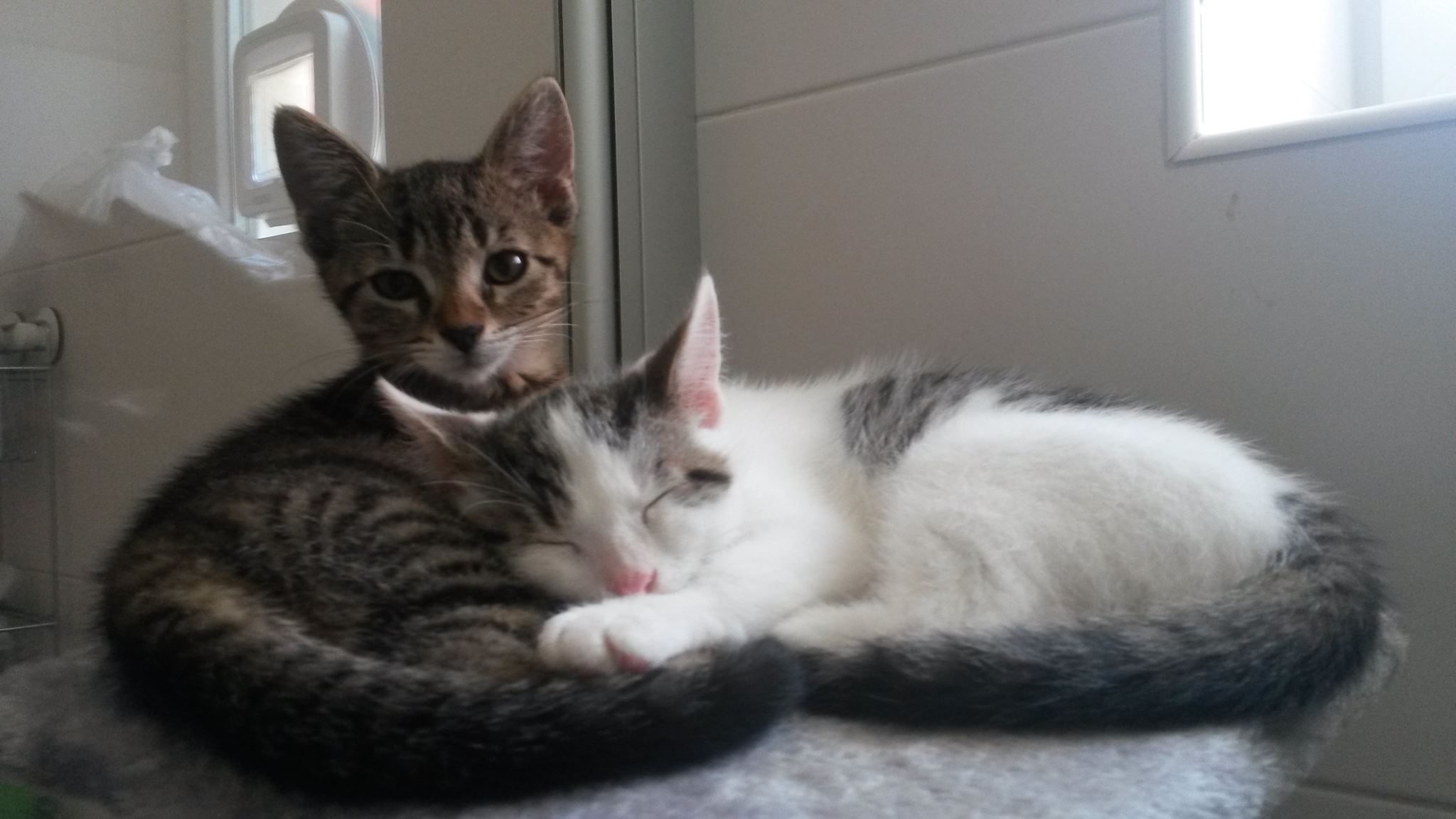 Nach unserer Ankunft bei SOS Katze waren wir bekannt, als die Kätzchen, die nicht schlafen. Wir waren zwar noch winzig und hatten einen fiesen Schnupfen, aber es war einfach alles so interessant, dass wir kaum zur Ruhe gekommen sind – und die Pflegemama natürlich auch nicht. Hehehe!