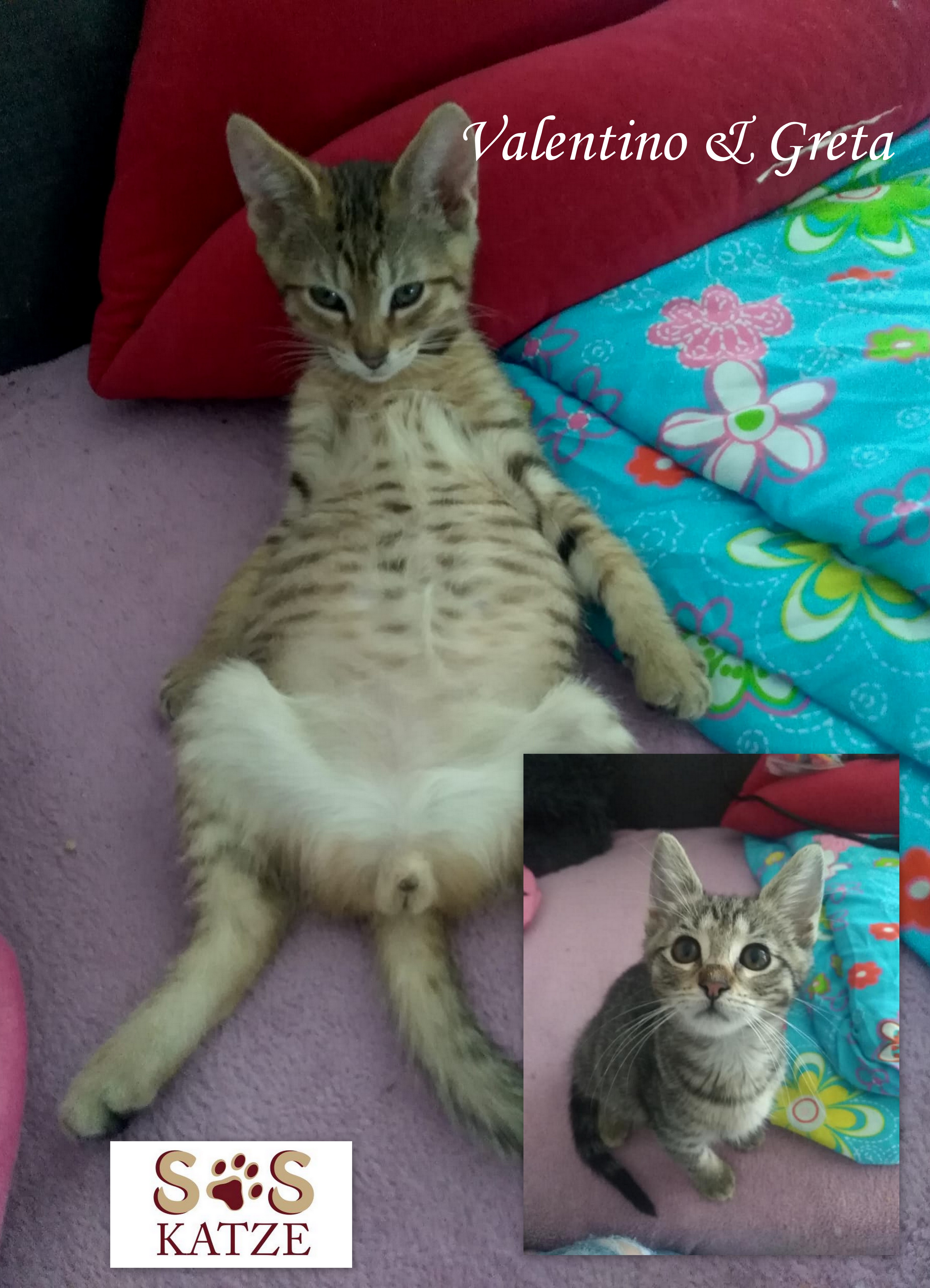 Vermittelt wird über den Tierschutzverein SOS Katze und gegen eine Tierarztkostenbeitrag von jeweils € 40,- pro Katze, sowie anteiligen Impfkosten von je € 30,-/Impfung pro Katze. Damit können wir dem nächsten Notfellchen helfen.