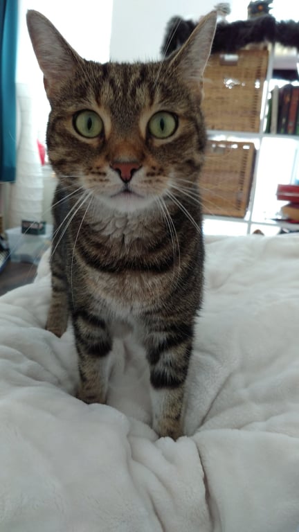 Sheila ist eine etwas schüchterne Maus. Sie ist vorsichtiger am Anfang, aber ihr Vertrauen gewinnt man sehr schnell und dann geht das Schnurrkonzert los. Sie ist eine sehr verschmuste und verspielte Katze.