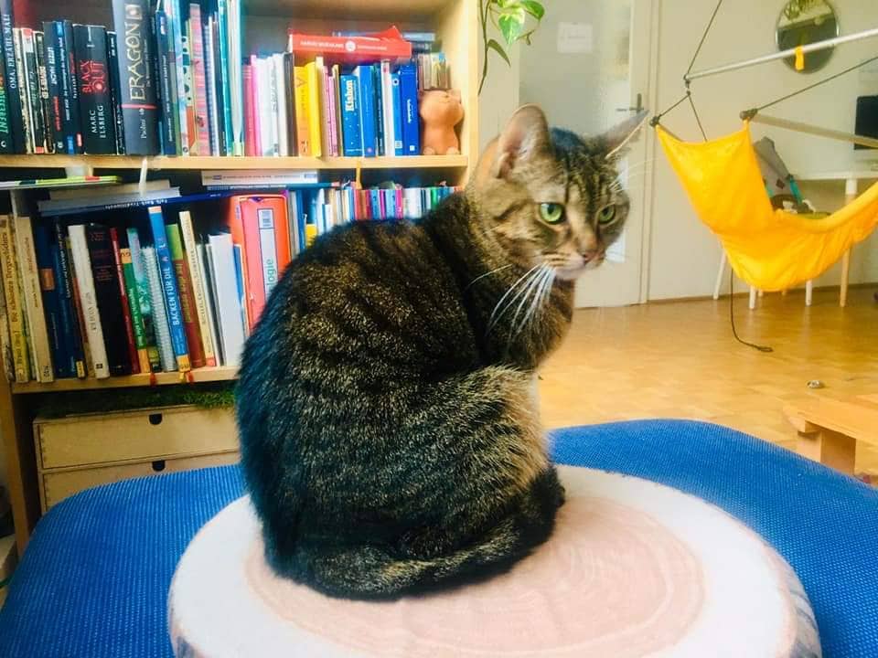 Meist warte ich dann bei der Türe, bis Frauchen wieder nachhause kommt. Dann ist sie nicht mehr sicher vor mir. Sobald sie sitzt, springe ich schon auf ihren Schoß und mache es mir gemütlich. So Streicheleinheiten sind schon was Großartiges.