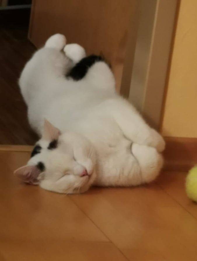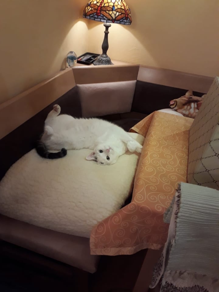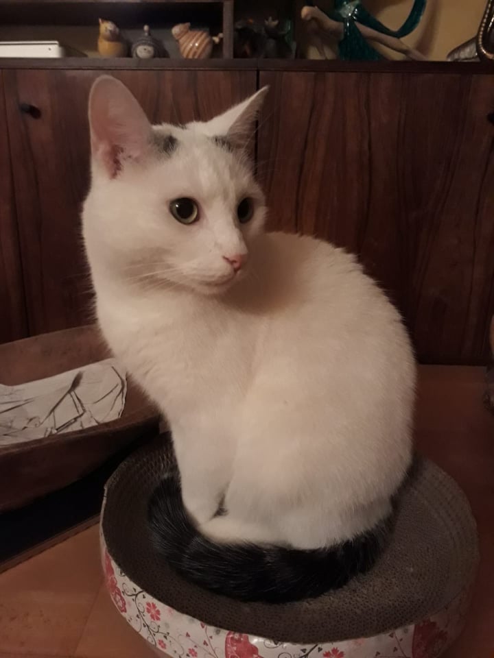 Am Anfang ist er recht ängstlich und braucht Zeit, um sich einzugewöhnen, aber recht rasch kommt sein verspielter Charakter zum Vorschein und er genießt seine Kuscheleinheiten.
